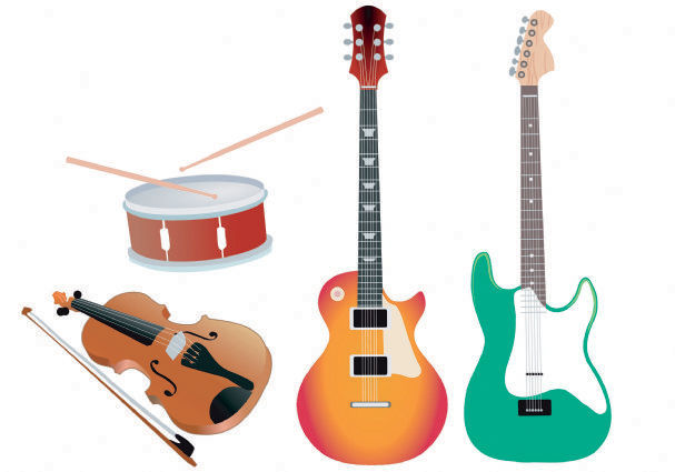 Leg, at I spiller på forskellige instrumenter, når I synger sange eller hører musik. Det kan være guitar, violin eller harmonika.